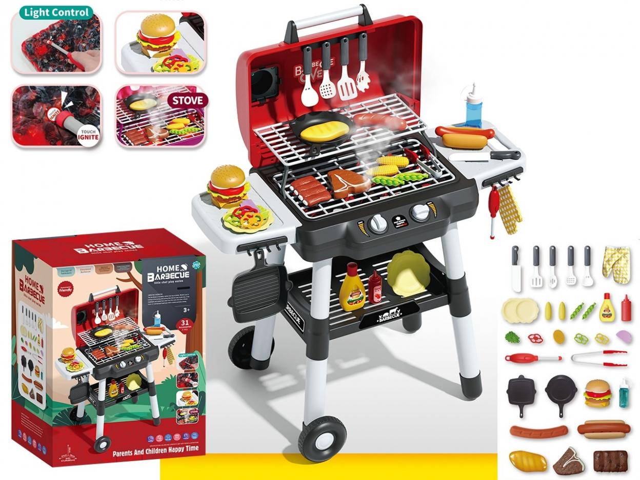 Realistyczny grill dla dzieci to idealna propozycja dla małych mistrzów gotowania! Zestaw wyposażony jest w efekty świetlne imitujące żar, pokrętła, półki boczne oraz bogaty komplet akcesoriów do grillowania. Dzięki kółkom grill można łatwo przestawiać, a stabilna konstrukcja sprawdzi się zarówno w domu, jak i w ogrodzie. Zabawa rozwija kreatywność, wyobraźnię oraz umiejętności społeczne poprzez odgrywanie ról. Cechy produktu: efekty świetlne imitujące rozżarzony węgiel; otwierana pokrywa; półki boczne i dolna półka na akcesoria; 31 elementów w zestawie (jedzenie, sztućce, przybory, sosy itp.); realistyczny wygląd; odpowiedni dla dzieci 3+. Wymiary opakowania: Wysokość: ok. 59 cm; Szerokość: ok. 45 cm; Głębokość: ok. 14 cm.
