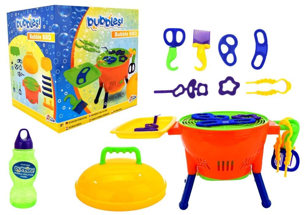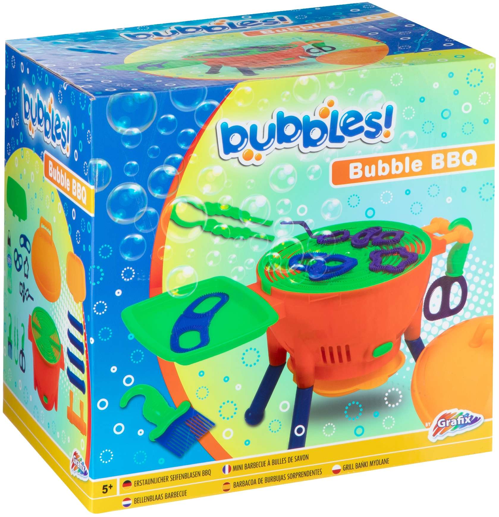 Kolorowy grill do puszczania baniek mydlanych to wspaniały pomysł na urozmaicenie zabawy na świeżym powietrzu. Zabawka automatycznie wydmuchuje bańki i ponownie namacza mechanizm w pojemniku z płynem dzięki czemu szybko i bez wysiłku podwórko zamieni się w bajeczną krainę pełną mydlanych baniek.