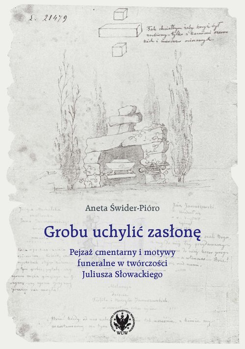 Książka ukazuje drogę dojrzewania twórczości i myśli Juliusza Słowackiego odzwierciedloną w tropach funeralnych: istniejących niezwykle licznie w dziele poety motywach śmierci, żałoby, grobu, cmentarza, martwych ciał, melancholii i innych tanatycznych wątkach. Rozważania wiążą się z obszarem egzystencji oraz wyobraźni poetyckiej, implikując tym samym kontekst interdyscyplinarny, odsyłający do sztuki (głównie malarstwa), architektury sepulkralnej, filozofii, myśli religijnej i antropologii. ****** “To Move the Curtain of the Grave”. Cemetery Landscape and Funeral Motifs in Juliusz Słowacki’s Works The book shows maturation of Juliusz Słowacki's work and thoughts reflected in funeral tropes: death, mourning, grave, cemetery, dead bodies, melancholy and other thanatic motifs existing in an extremely large number in Słowacki’s works. The reflections are related to the area of existence and poetic imagination, thus implying an interdisciplinary context, referring to art. (mainly painting), sepulchral architecture, philosophy, religious thought and anthropology.