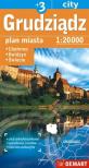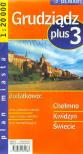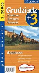 Plan Grudziądza w skali 1:20 000 plus centrum w skali 1:10 000, wzbogacony o plany najważniejszych miast w okolicy. - Ulice jednokierunkowe - Strefy ruchu pieszego - Sygnalizacja świetlnaLinie komunikacyjne (autobusowe i tramwajowe) - Spisy ulic - Szlaki turystyczne i ścieżki rowerowe.