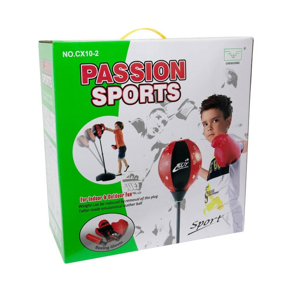 Gruszka bokserska 124 cm. Dodatkowe akcesoria: rękawice i pompka. Na opakowaniu instrukcja do złożenia. Produkt nie potrzebuje baterii. Zabawka przeznaczona dla dzieci powyżej 3 roku życia.