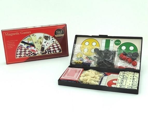Gry: chińczyk, domino, warcaby, szachy, karty Zestaw składa się z metalowej składanej planszy i pionków w których zamontowane są magnezy, dzięki którym pionki nie uciekną podczas wstrząsów dlatego jest świetnym rozwiązaniem podczas podróży.