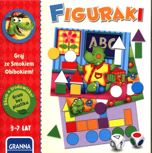 Cześć Rodzice i Dzieciaki! Dziś przedstawiam Figuraki. Grę ciekawą bardzo, w której wiele kryje się figurek. Barwnych kółek, prostokątów, kwadracikow i trójkątów. Kto chce znać się na figurkach, w Figuraki niech da nurka. Podczas gry dzieci uczą się rozpoznawać figury geometryczne: koło, kwadrat, trójkąt i prostokąt. Figury występują w sześciu kolorach, a dzieci rzucają dwiema kostkami. Wylosowane elementy muszą zostać ułożone na planszy. Zawartość: 4 dwustronne plansze 72 kolorowe elementy kostka z kolorowymi iczkami kostka z figurami geometrycznymi instrukcja. Liczba graczy 1-4 Wiek 3-7 lat