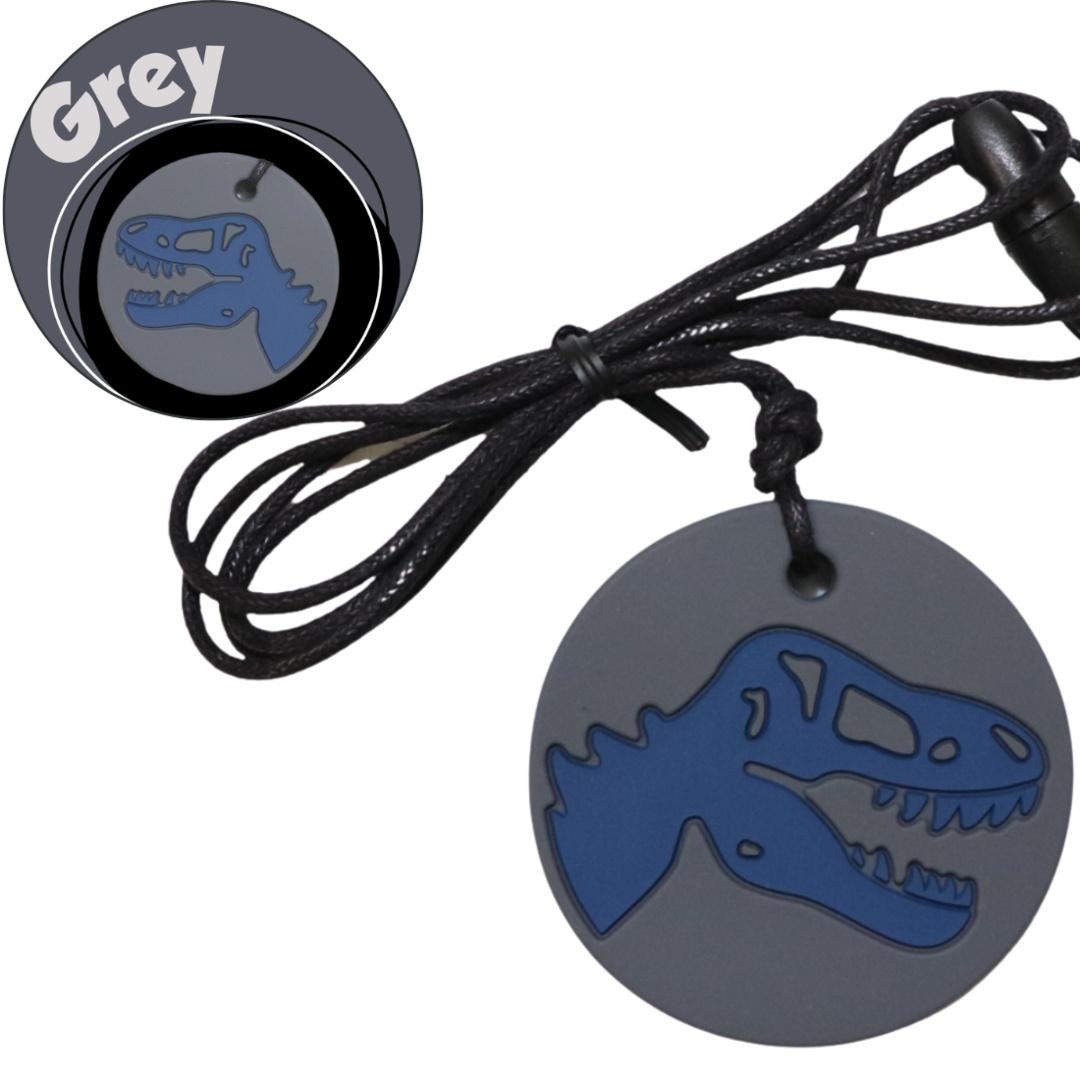 Gryzak antystresowy naszyjnik - dinozaur szary