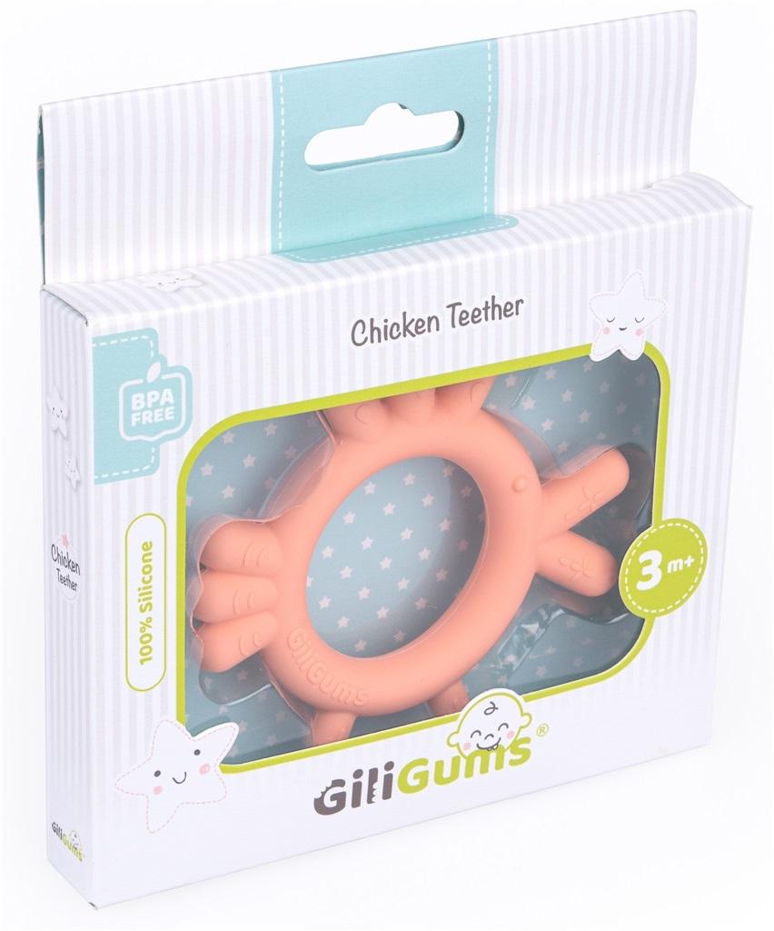 Uroczy, silikonowy kurczak przyniesie ulgę w ząbkowaniu i zabawi malucha! Zróżnicowane faktury gryzaka sprawiają, że podczas gryzienia, delikatnie masuje on obolałe dziąsła dziecka. Kształt gryzaka jest idealnie dostosowany do małych rączek, a bezpieczne, silikonowe tworzywo, z którego został on wykonany, pozwoli utrzymać gryzak w czystości.