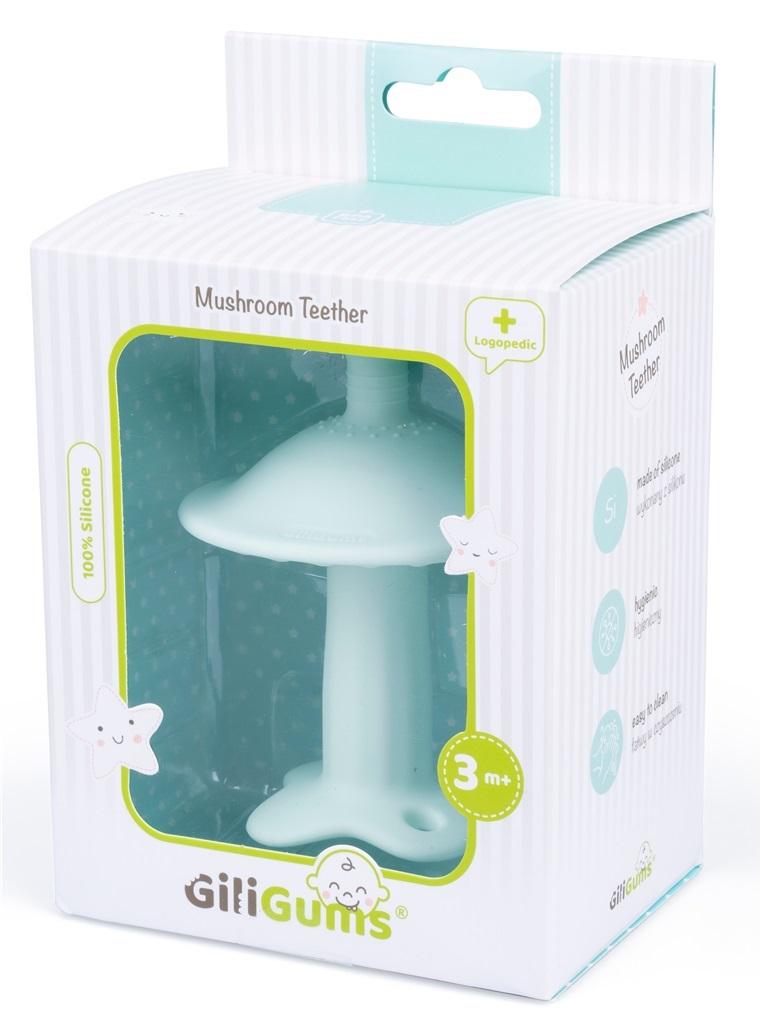 Silikonowy grzybek uspokoi dziecko i umili okres ząbkowania! Unikatowy kształt gryzaka, imitujący pierś matki, wycisza malucha, zapewniając mu poczucie bezpieczeństwa. Gryzaczek pełni funkcję profilaktyki logopedycznej, gdyż korzystanie z niego wzmacnia mięśnie ust i sprawność aparatu gryząco-żującego. Grzybek ozdobiony jest wypustkami, które delikatnie masują dziąsła maluszka.