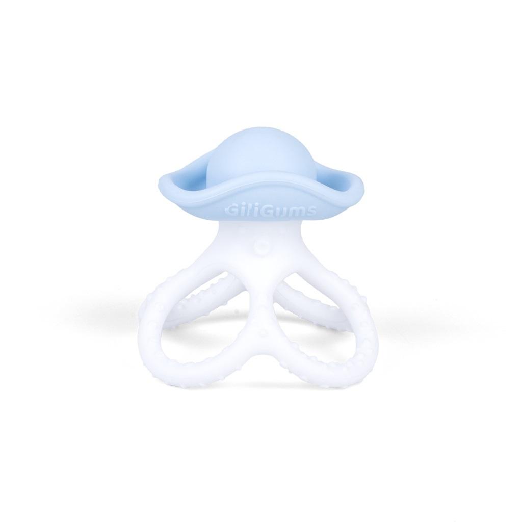 Zabawna ośmiornica w kolorowym kapeluszu nie tylko przyniesie ulgę obolałym dziąsłom ząbkującego dziecka, ale też zapewni mu rozrywkę. Unikatowy kształt i praktyczne otwory ułatwiają chwytanie i utrzymanie gryzaka w małych rączkach. Ośmiornica dostępna w trzech różnych kolorach do wyboru: pomarańczowym, miętowym oraz niebieskim.