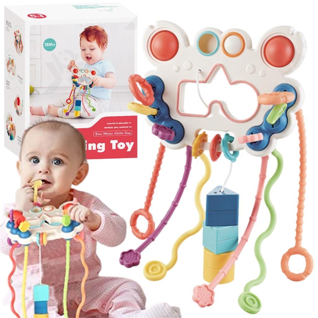 Każdy sznurek ma inny kolor, co pomaga w rozwijaniu poznawania kolorów u dziecka. Maluch może obserwować i porównywać kolory, a także uczyć się nazw kolorów podczas zabawy z krabem.