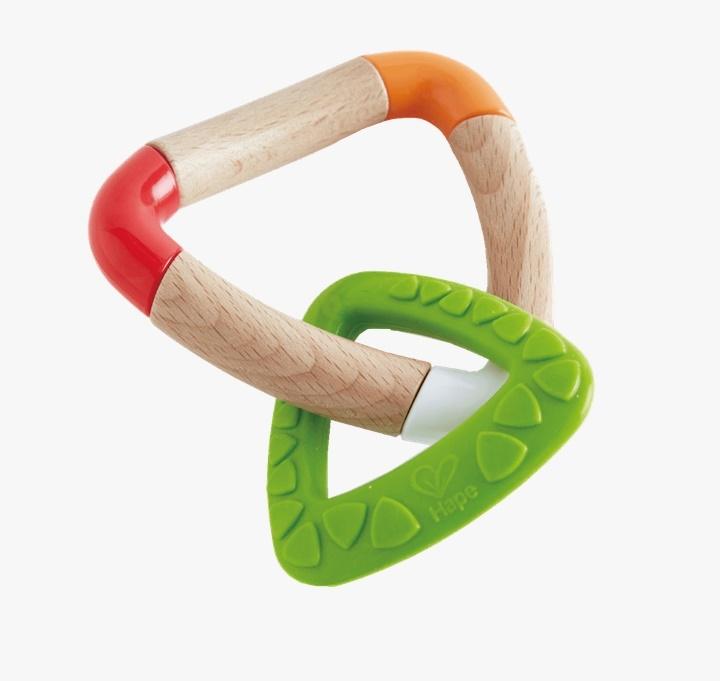 Trójkątny gryzak marki Hape zapewni dziecku ulgę, gdy zaczną wyrastać mu pierwsze ząbki. Gryzak wykonany jest z wysokiej jakości bezpiecznego drewna oraz sylikonu (bez zawartości BPA). Zabawka idealnie nadaje się dla niemowlaków już od pierwszych miesięcy życia.