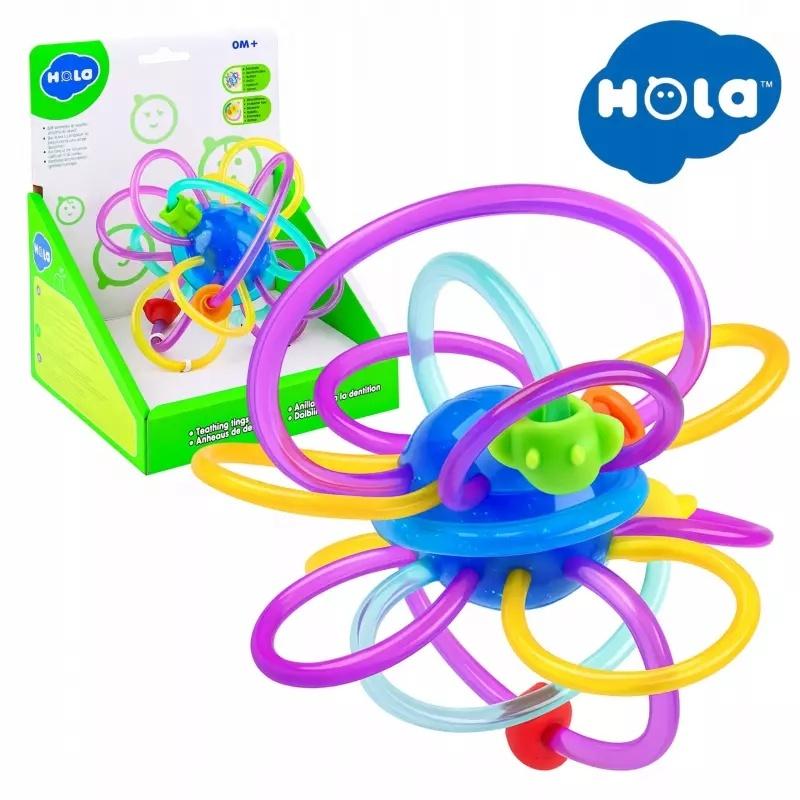 Gryzaczek składa się z plastikowej kuli, która się obraca oraz wychodzących z niej silikonowych, kolorowych ramion, pełniących funkcję uchwytów, przy tym wszystkim jest niezwykle lekki. Nasycona kolorystyka rozbudza wyobraźnię niemowlęcia oraz jest dla niego atrakcyjna.