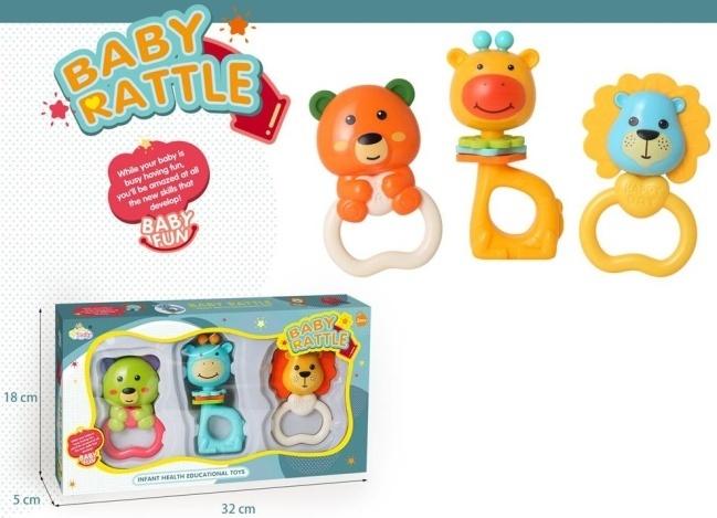 Wprowadź swoje dziecko w fascynujący świat dźwięków i kolorów z wyjątkowym zestawem grzechotek Baby Fun. Ten starannie skomponowany komplet trzech edukacyjnych zabawek to znacznie więcej niż tylko sposób na umilenie czasu spędzanego w łóżeczku czy wózku. Każdy element zestawu przedstawia inne przyjazne zwierzątko, które szybko stanie się ulubionym towarzyszem codziennych odkryć. Żywe, nasycone barwy przyciągają wzrok i pomagają w nauce rozróżniania kolorów, natomiast delikatne grzechotanie stymuluje słuch, ucząc dziecko związku przyczynowo-skutkowego między ruchem ręki a dźwiękiem.