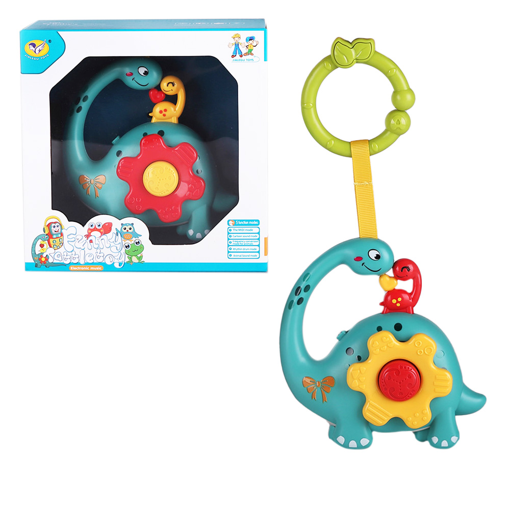 Grzechotka - 2 dinusie. Efekty dźwiękowe: muzyka, dźwięki perkusji, odgłosy zwierząt. Wymagane baterie - 2xAAA (niedołączone).