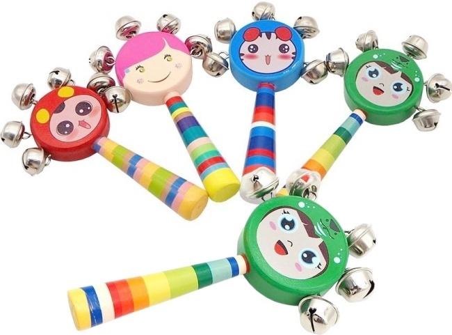 Przedstawiamy uroczą drewnianą grzechotkę z dzwonkami, która zachwyci każde dziecko! Wykonana z wysokiej jakości drewna, jest gładka i przyjemna w dotyku, a dzięki ergonomicznemu kształtowi doskonale leży w małej rączce. Każda grzechotka ozdobiona jest innym, wesołym wzorem z wizerunkiem uśmiechniętej buźki, co sprawia, że są nie tylko instrumentem, ale i wizualnie atrakcyjną zabawką. Dookoła główki umieszczone są błyszczące dzwoneczki, które wydają przyjemny, delikatny dźwięk podczas potrząsania, rozwijając zmysł słuchu dziecka. Rękojeść w kolorowe paski dodaje jej uroku i stymuluje zmysł wzroku. To bezpieczna i trwała zabawka, idealna do wczesnej edukacji muzycznej i rozwijania koordynacji ruchowej. Doskonały pomysł na prezent dla malucha.