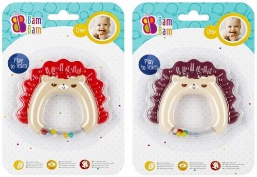 GRZECHOTKA JEŻYK na kółkach BAM BAM przeznaczona dla niemowląt od urodzenia. W subtelnej, pastelowej kolorystyce, o zróżnicowanej fakturze materiałów jak i różnorodnej formie, posiada elementy interaktywne zachęcające malucha do zabawy, a jednocześnie stymulujące rozwój jego zmysłów wzroku, słuchu oraz zdolności motorycznych. Mięciutki grzbiet jeżyka pozwalają masować nabrzmiałe dziąsła ząbkującego niemowlaka. Wymiary/waga/baterie: wymiary produktu (dł. x wys. x gł.)[cm]: 11x10x2, wymiary opakowania (dł. x wys. x gł.)[cm]: 14x21x3, waga produktu bez opakowania [kg]: 0,04 kg, waga produktu w opakowaniu [kg]: 0,06 kg, nie wymaga zasilania bateriami. Grzechotka przeznaczona dla dzieci w wieku: 0m+. Zabawka pakowana na blistrze.