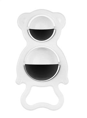 Piękna czarno-biała grzechotka przeznaczona dla najmłodszych dzieci. Takie zestawienie kolorystyczne idealnie stymuluje zmysł wzroku u niemowlaka, który nie rozróżnia jeszcze barw.