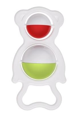 Piękna klasyczna grzechotka w kształcie misia. Idealnie stymuluje zmysł słuchu, wzroku oraz dotyku Twojego malucha.