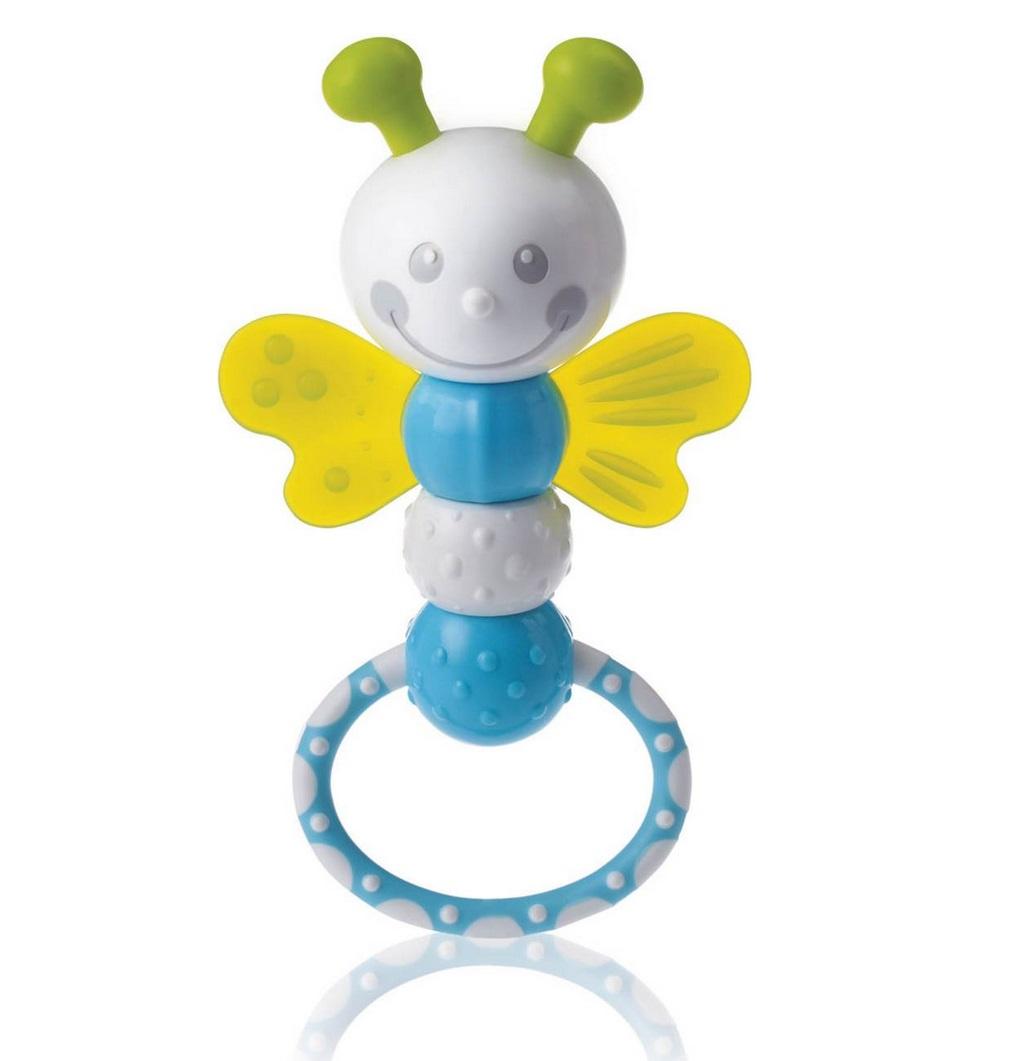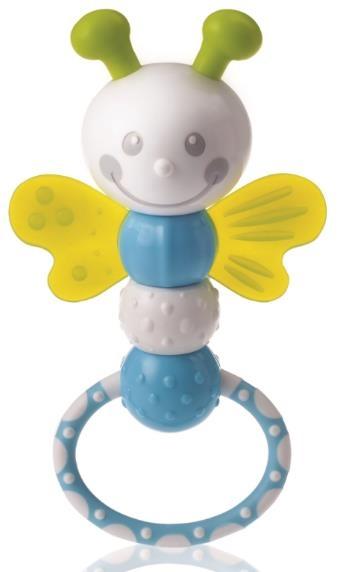 Uśmiechnięta grzechotka w kształ‚cie pszczół‚ki w pię™knych kolorach. Zabawka delikatnie dzwoni przy potrząsaniu, a dzię™ki 6 różnym powierzchniom gryzienia przyniesie ulgę obolał‚ym dziąsełkom. Produkt przeznaczony dla dzieci powyżej 3 miesią…cażycia.