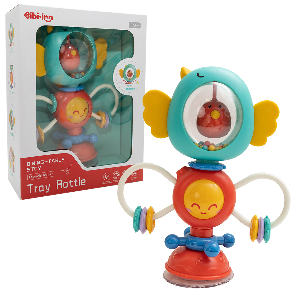 Grzechotka ptaszek z przyssawką 2 kolory – zielony i czerwony ptaszek
