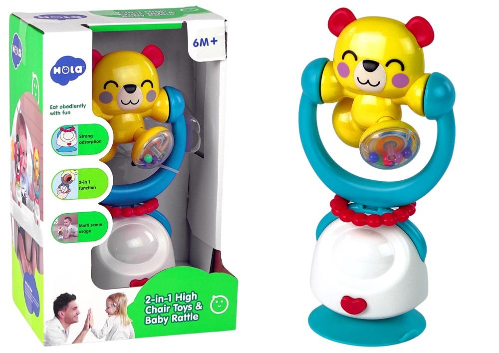 Grzechotka Sensoryczna Dla Niemowląt Miś Stojak Przyssawka Prawidłowy rozwój i uśmiech na twarzy dziecka jest bardzo istotną kwestią. Funkcje, jakie posiada ta zabawka, sprawią, że dziecko już od najmłodszych lat zacznie rozróżniać i uczyć się nowych kolorów, dźwięków i kształtów. Pobudza wiele zmysłów małego człowieka, pomagając mu odkryć otaczający go świat. Urocza grzechotka miś obraca się o 360 stopni, wewnątrz jednej z nóżek znajdują się kolorowe koralki, które wydają dźwięki. Zabawka ma także podstawę z przyssawką, która zapobiega przewróceniu lub rzuceniu jej na podłogę podczas zabawy, ale wprawia ją w ruch, dzięki czemu buja się na boki. Można bawić się nią dosłownie wszędzie wystarczy, aby powierzchnia była płaska, może podłoga, taca do jedzenia lub stolik na każdej. Dwie opcje zabawy stabilnie na stoliku, bądź dzięki rączce. Jak usunąć podstawkę? Wystarczy nacisnąć serduszko na samym dole, pociągnąć i mamy samą grzechotkę, którą dziecko może trzymać w swoich rękach. Wykonana jest z wysokiej jakości certyfikowanego plastiku, który jest w pełni bezpiecznym materiałem dla małego dziecka. Uszy i mały okrąg wyprodukowane są z miękkiego tworzywa, co jest gwarancją, że dziecko nie wyrządzi sobie krzywdy podczas wesołej zabawy. Wymiary zabawki: 20 cm x 8 cm x 8 cm Wymiary opakowania: 24 cm x 11 cm x 15 cm Przeznaczona jest dla wszystkich maluszków, które osiągnęły 6 miesiąc życia.