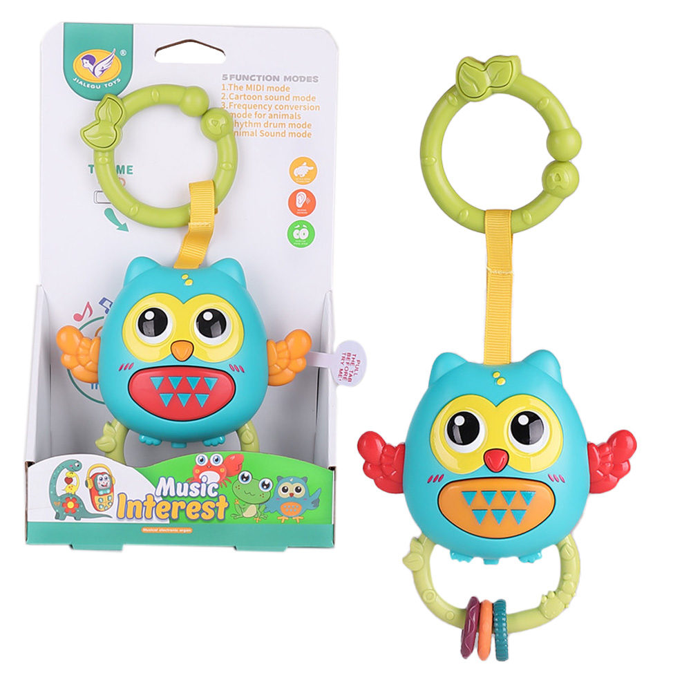Grzechotka - sowa, występuje w dwóch wersjach kolorystycznych: czerwonym i pomarańczowym. Efekty dźwiękowe: muzyka, dźwięki perkusji, odgłosy zwierząt. Wymagane baterie - 2xAAA (dołączone).