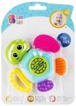 Kolorowa Grzechotka Żółwik BAM BAM przeznaczona dla niemowląt od 3 miesiąca życia. W intensywnej kolorystyce, o zróżnicowanej fakturze materiałów i róznorodnej formie wypustek na płetwach zachęcająca malucha do zabawy,  jednocześnie stymulując rozwój zdolności manualnych oraz  zmysłów dotyku, wzroku, słuchu oraz zdolności motorycznych. INteraktywny przycisk, wyzwalajacy dzwięk, stanowis dodatkową atrakcjję aktywizującą zmysł słuchu. Grzechotka, dzieki miękkim silikonowym płetwom, może być takze doskonałym remedium w okresie ząbkowania, przynosząc ulgę obolałym dziąsłom maluszka. Wymiary/waga/baterie: wymiary produktu (dł. x wys. gł.)[cm]: 12x5x12, wymiary opakowania (dł. x wys. x gł.)[cm]: 15x21x5, waga produktu bez opakowania [kg]: 0,07 kg, waga produktu w opakowaniu [kg]: 0,09 kg, nie wymaga zasilania bateriami. Zabawka pakowana na blistrze.