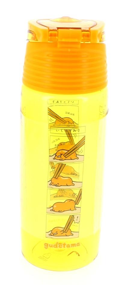 Gudetama to leniwe biało-żółte jajko, które świat poznał i pokochał za sprawą krótkich japońskich animowanych bajek. Cała seria utrzymana jest w kolorystyce czarno-biało-żółtej. Bidon z dzióbkiem z uszczelką zapobiegająca wylewaniu się napoju. Wykonany z mocnego plastiku, pół/przeźroczysty w kolorze żółtym z grafiką przedstawiającą perypetie nieszczęśliwego jajka. Zakrętka bidonu jest w kolorze pomarańczowym. Pojemność - 500 ml Wysokość całego bidonu (łącznie z zakrętką) - 18,5 cm