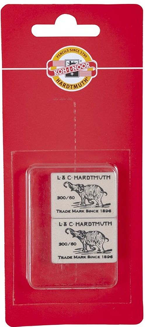 Gumka biała, wytwarzana z naturalnego kauczuku. Przeznaczona do wycierania ołówków średnich twardości i miękkich. Wielkość gumki 31x21x8 mm, 2szt. w blistrze.