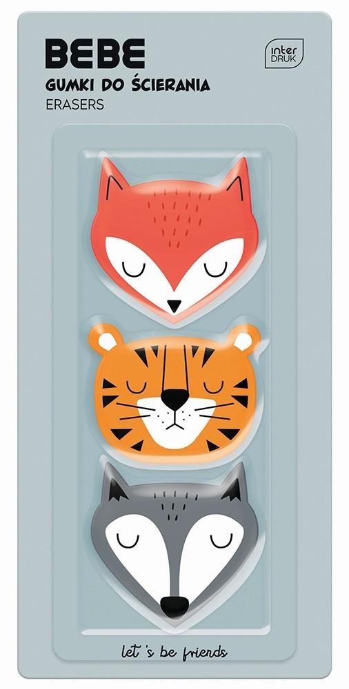 Zestaw 3 gumek w kształcie zwierzaków z serii BEBE Friends. Doskonale ściera nie pozostawiając śladów.