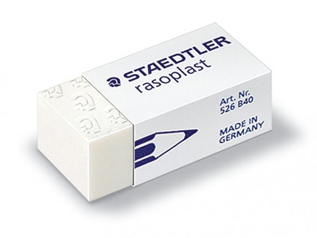 Gumka do mazania serii Rasoplast firmy Staedtler. Oferuje wysoką wydajność wymazywania, przy zachowaniu dbałości o powierzchnię papieru. Pozostawia minimalną ilość resztek, a papierowa, laminowana otoczka zapewnia płynną regulację wysunięcia gumki oraz wygodny uchwyt.