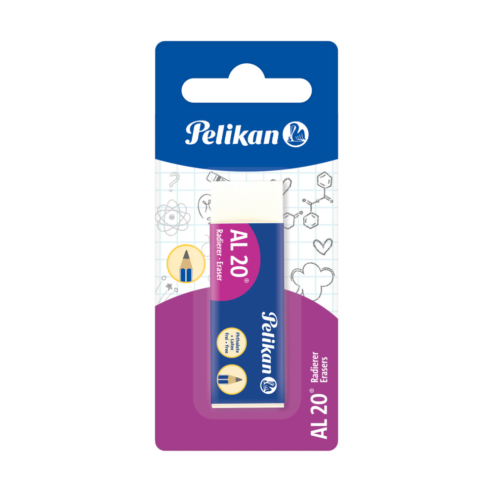 Gumka do ścierania AL20: delikatna dla papieru, do wszystkich powierzchni, do ścierania kredek i ołówków, biały kolor.