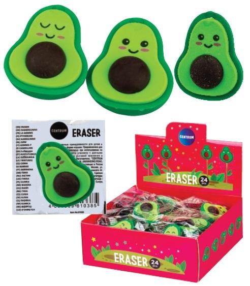 gumka w kształcie awokado, pakowana na displayu w miksie wzorów
