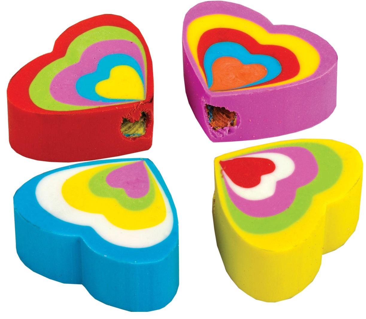 Gumka do ścierania w kształcie serca z otworem na ołówek, który ułatwia wygodne mocowanie.