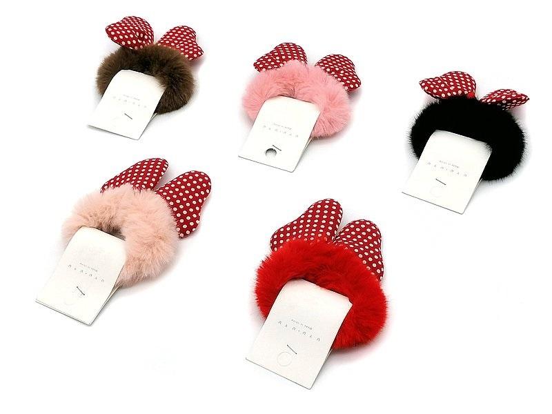 Opakowanie Gumka do włosów, pluszowa z kokardą 8,5cm MIX