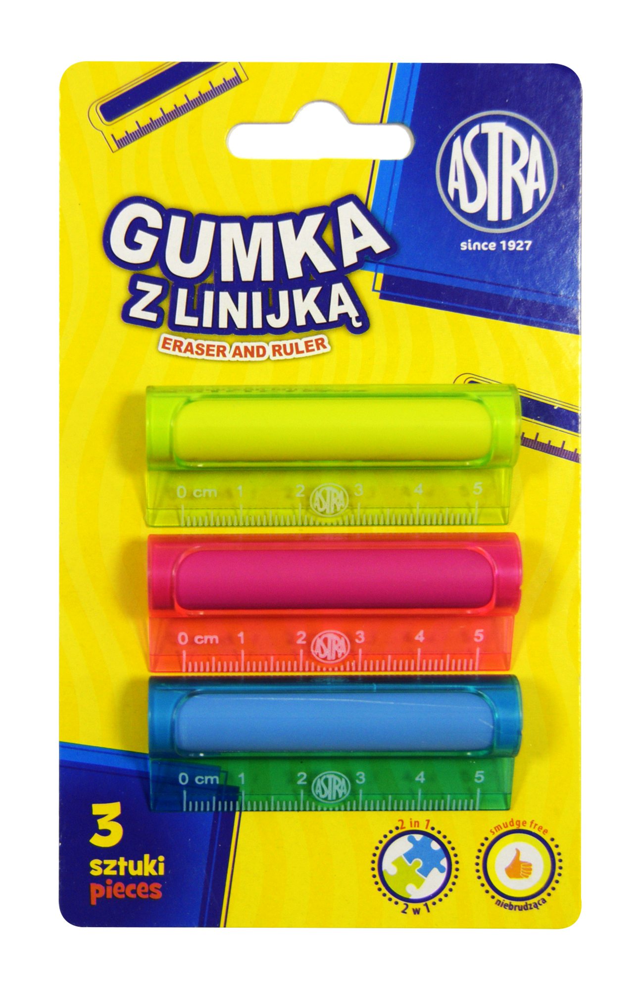 Opakowanie Gumka i linijka 2w1 Astra blister 3szt.