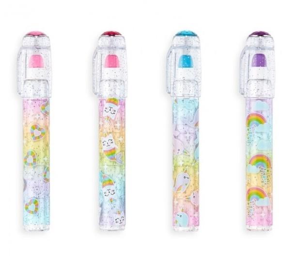 Mieniąca się brokatem oprawka, ozdobiona ""klejnotem"" skuwka, bajkowo słodka kolorystyka dopełniona truskawkowym zapachem oraz urocze stworzonka w towarzystwie serc i tęcz. Tak prezentuje się nietuzinkowa seria mechanicznych gumek do ścierania Ooly. Błyszczące osłonki w sprytny sposób skrywają gumki do ścierania wydłużając ich przydatność. Do tego ułatwiają wycieranie zapewniając wygodny chwyt i rozwiązują problem braku miejsca w piórniku. Stylizowana na długopis gumka mieści się tam gdzie zmieści się flamaster czy pióro.