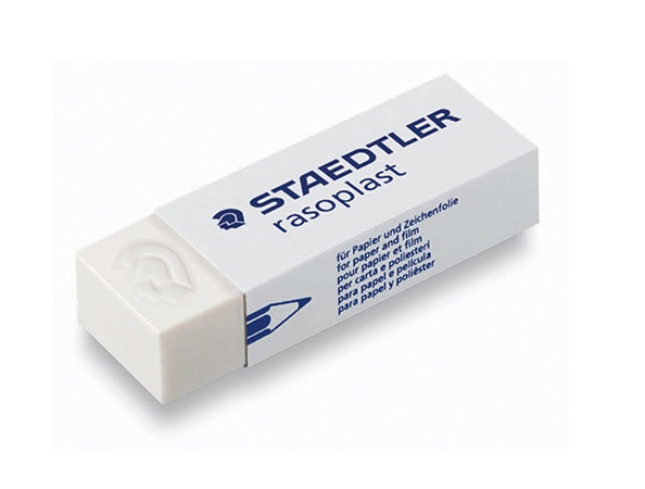 Gumka do mazania serii Rasoplast firmy Staedtler. Oferuje wysoką wydajność wymazywania, przy zachowaniu dbałości o powierzchnię papieru. Pozostawia minimalną ilość resztek, a papierowa, laminowana otoczka zapewnia płynną regulację wysunięcia gumki oraz wygodny uchwyt.