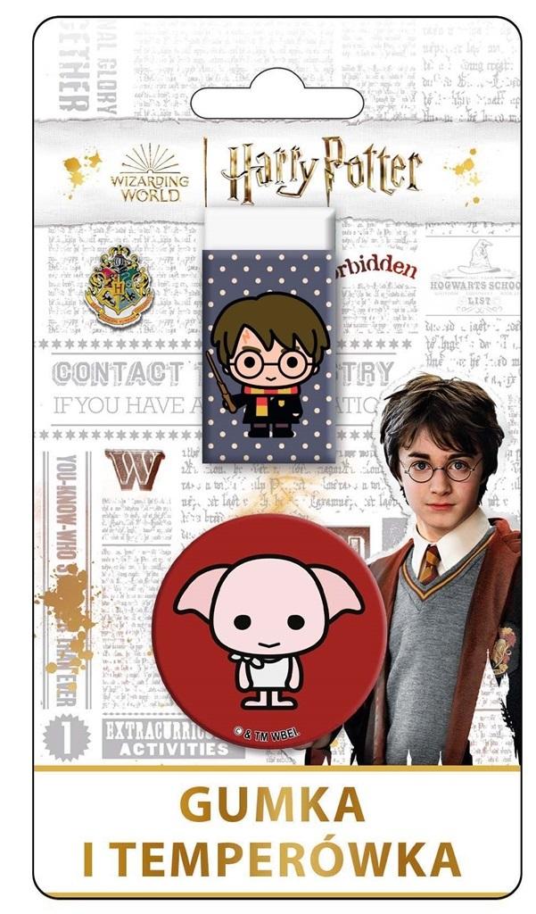 Zestaw (blister) zawiera: gumkę oraz temperówkę, wzór Harry Potter.