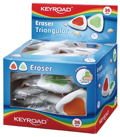 Gumka uniwersalna KEYROAD Trójkątna, pakowane na displayu, mix kolorów