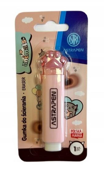Urocza wysuwana gumka łapka w kolorze pastelowo różowym.