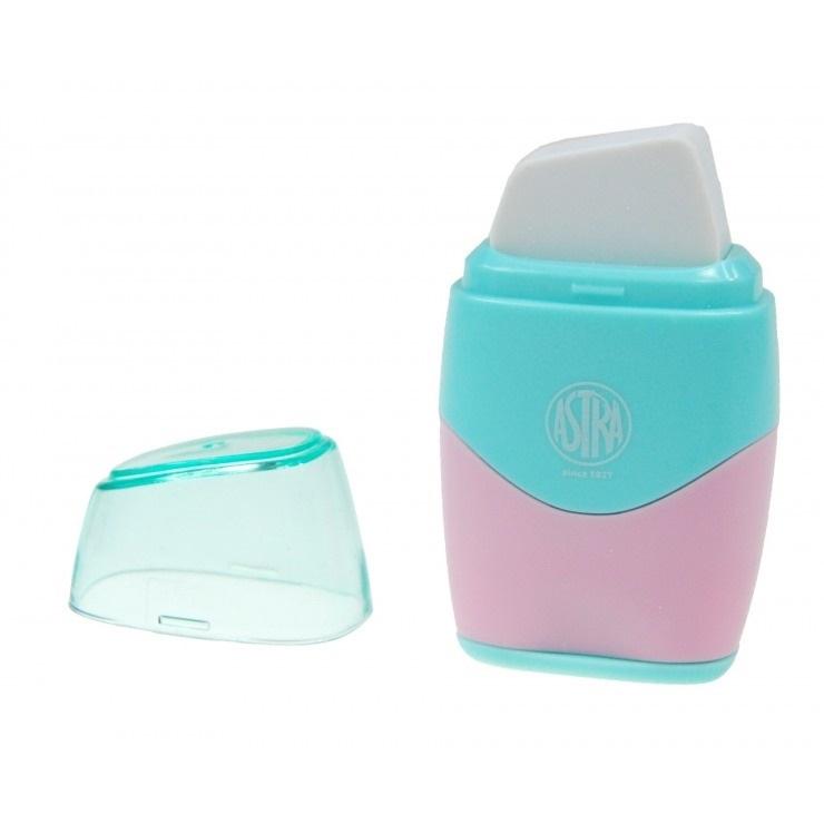Temperówka i gumka 2 w 1 Astra posiada umożliwia jednocześnie wymazywanie i temperowanie. Dzięki stopowemu ostrzu temperowanie nigdy nie było tak proste i przyjemne, natomiast gumka nie narusza struktury papieru.