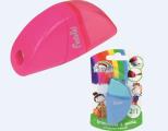 Temperówka do ołówków i kredek o średnicy do 8mm z pojemnikiem na ścinki. Gumka do wymazywania zabezpieczona zatyczką. Mix kolorów, towar wysyłany losowo.