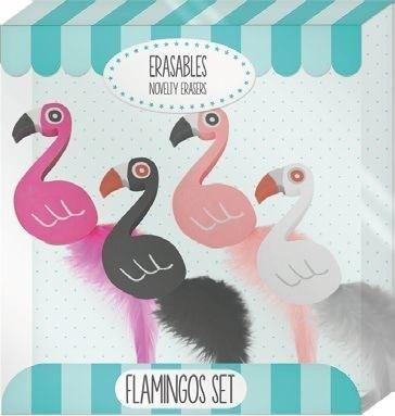 Zestaw 4 kolorowych gumek do ścierania w kształcie flamingów .