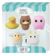 Zestaw 5 gumek do ścierania w kształcie zwierząt wiejskich.