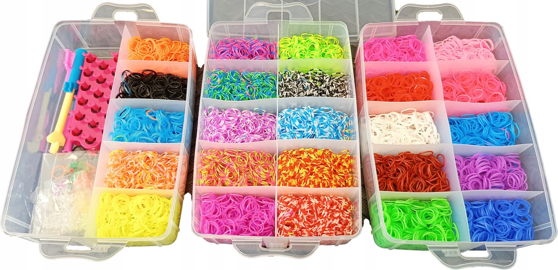 Mega zestaw gumek do tworzenia bransoletek 3-poziomowy organizer to prawdziwa gratka dla małych artystów i fanów kreatywnych prac ręcznych. W komplecie znajduje się ogromna ilość kolorowych gumek w różnych wzorach i odcieniach, a także wszystkie niezbędne akcesoria: szydełko, zapięcia, bazę do plecenia i haczyki. Trzy oddzielne poziomy z przegródkami ułatwiają segregację kolorów i pozwalają utrzymać porządek. Dzięki temu dziecko może tworzyć bransoletki, pierścionki, zawieszki i inne ozdoby w dowolnych kombinacjach.