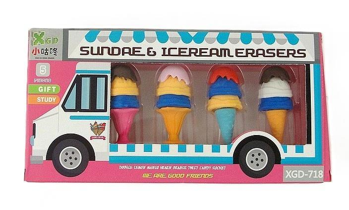 Zestaw 5 gumek do ścierania - lody; 17,5x5x3cm, W/B