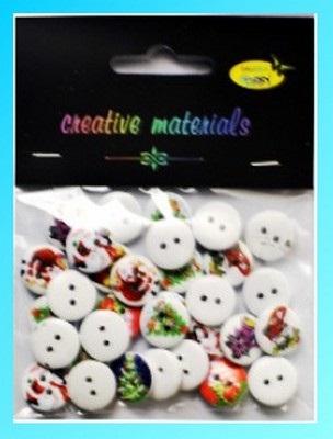 Guziki białe 15mm z nadrukiem we wzory zimowe. Op. 15 gram. Kod towaru : GZ007