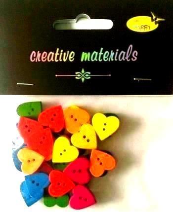 Guziki drewniane serca 15 mm miks kol. Op 6 gr. Kod: GZ018