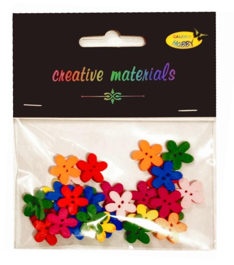 Guziki drewniane ozdobne Kwiatki 15mm a 30 szt GZ038