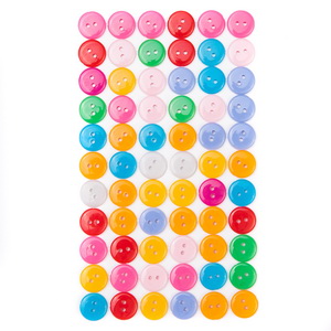 Zestaw plastikowych guzików samoprzylepnych w radosnych, soczystych kolorach. Guziczki prezentują się pięknie i cieszą oko na każdej kreatywnej pracy.