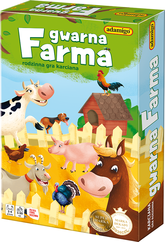 Gwarna Farma to dynamiczna karciana rozgrywka zapewniająca całej rodzinie świetną zabawę. Gdy znajdziesz co najmniej trzy takie same zwierzęta na farmie, musisz jak najszybciej położyć rękę na stodole i wydać odpowiedni odgłos. Dzięki temu zdobędziesz zwierzęta do swojego gospodarstwa. Podczas gry gracze muszą wykazać się refleksem i umiejętnością naśladowania wielu zwierzęcych odgłosów! Zestaw zawiera: • 112 kart • stodołę • 4 ogrodzenia • instrukcję Liczba graczy 2-4 Wiek 3+